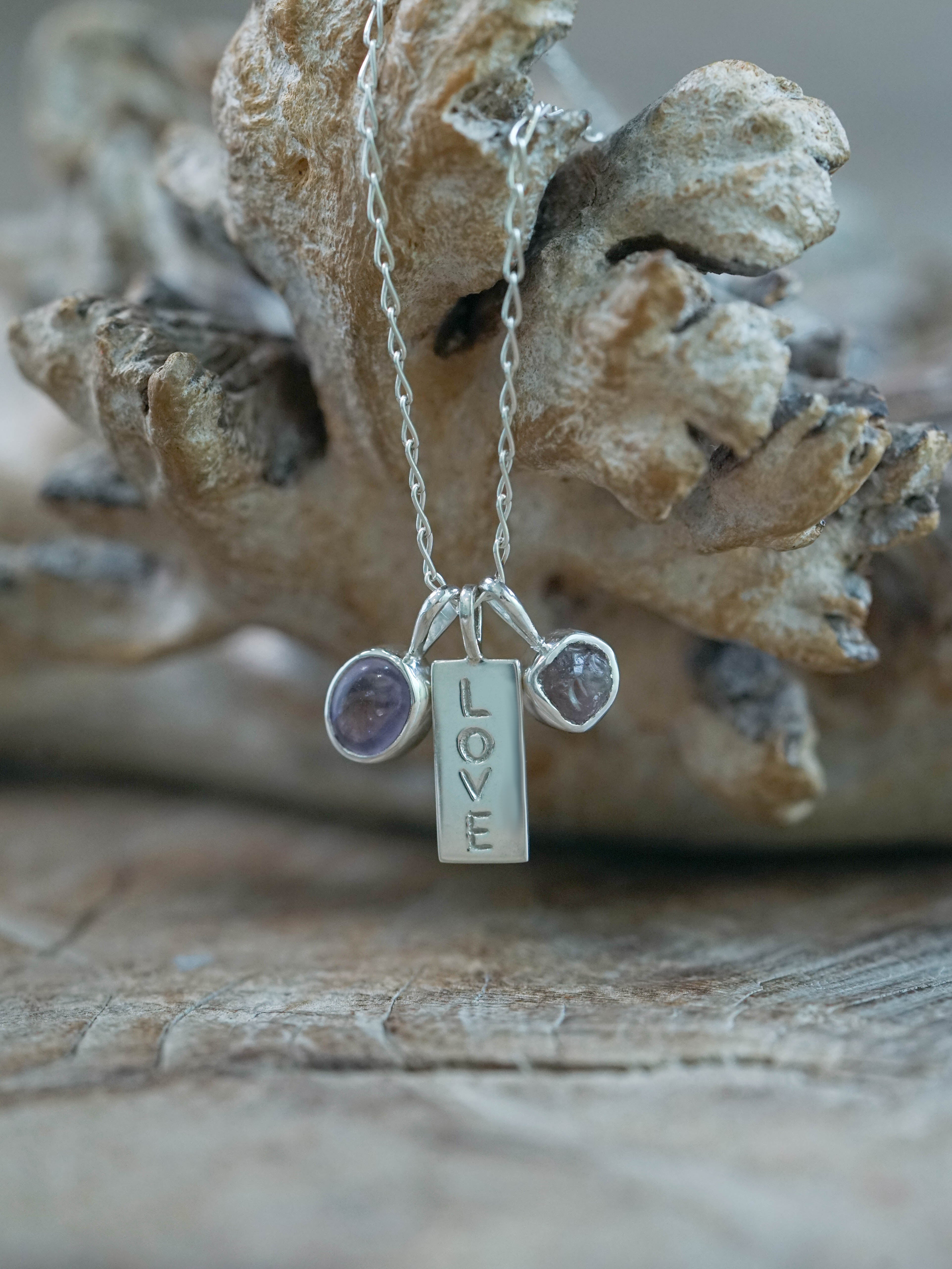 And in between the two gemstones? A tiny silver charm with one word etched in: LOVE.