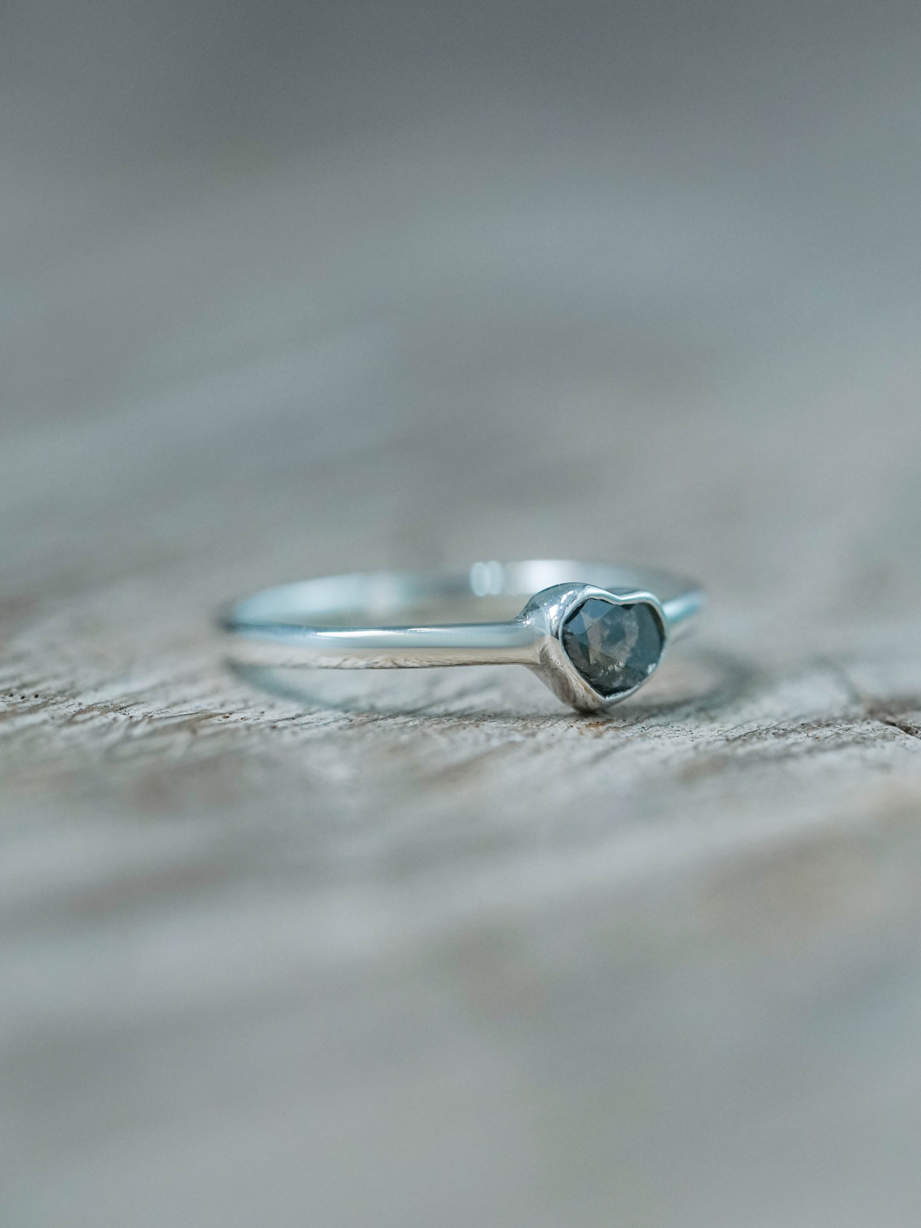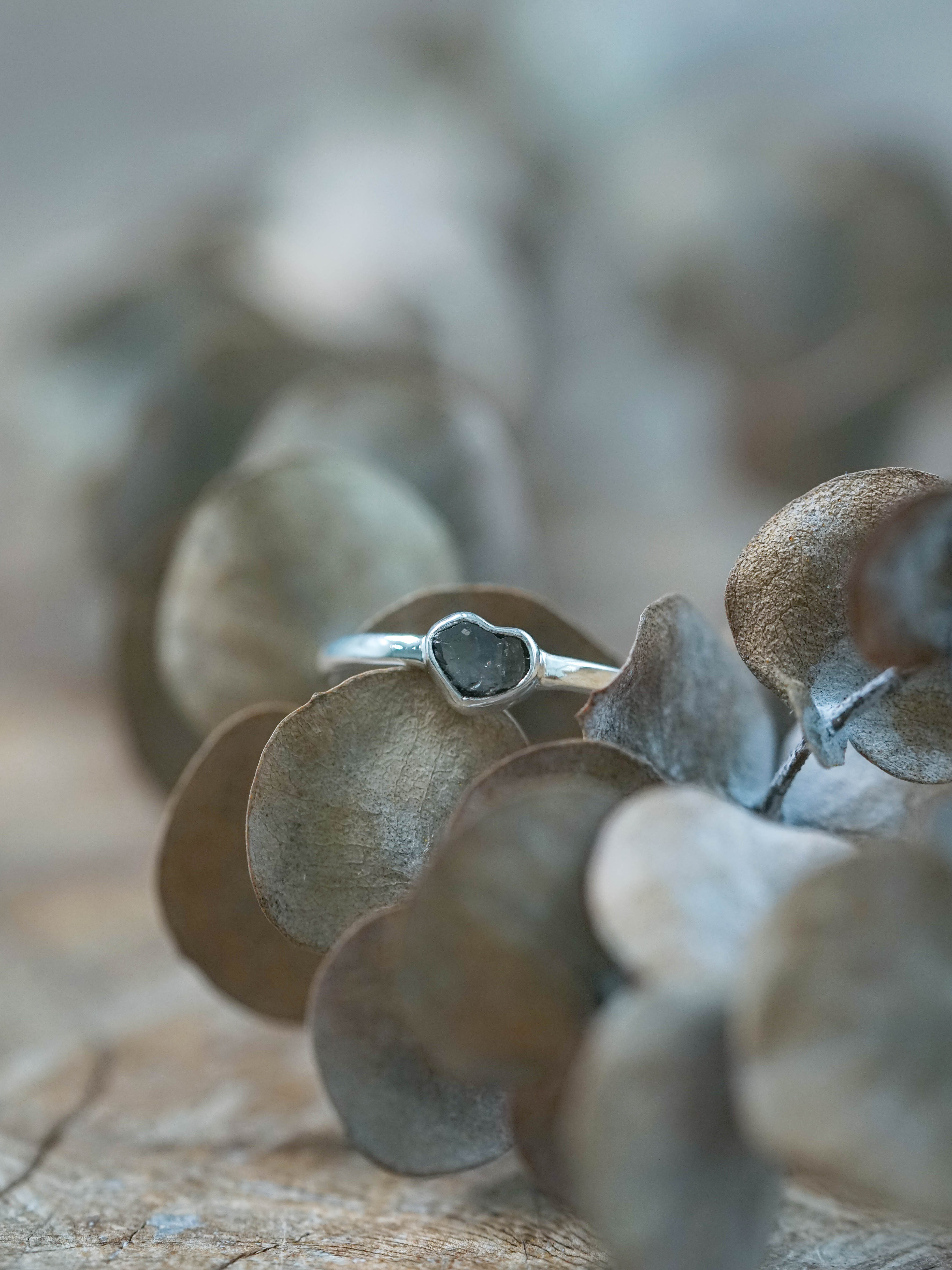 Set in recycled sterling silver, this 0.37 ct heart shaped diamond comes from the rivers of Kalimantan, Indonesia. It’s a polki cut, with earthy brown tones, visible inclusions, and edges that feel raw and real. It doesn’t try to be sweet. It just is.