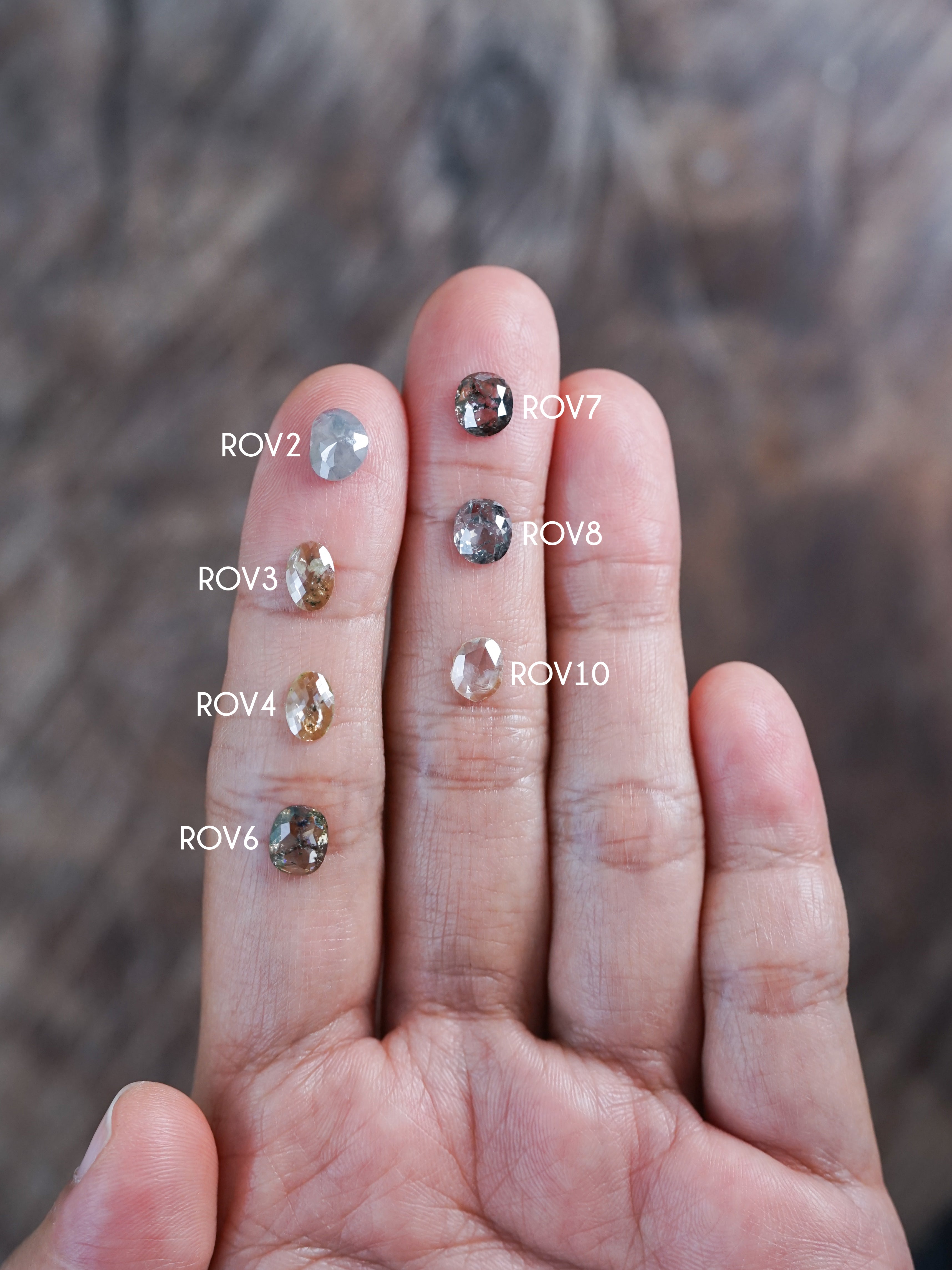 This oval rose cut diamond has a warm white tint and beautiful clarity. Vibes of romance all around. It was mined and cut in Kalimantan. Measures 6.1 x 4.4 x 1.9 mm.