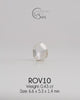 This diamond has a freeform shape, like an asymmetric oval. Milky gray color with a dark inclusion in its belly. This diamond has some natural pits on the surface on the side, and these imperfections are reflected in the price. A bezel setting would cover some of the pits. Sister stone to ROV1. Mined in Botswana, cut in India. Measures 7.6 x 6 x 2.4 mm.