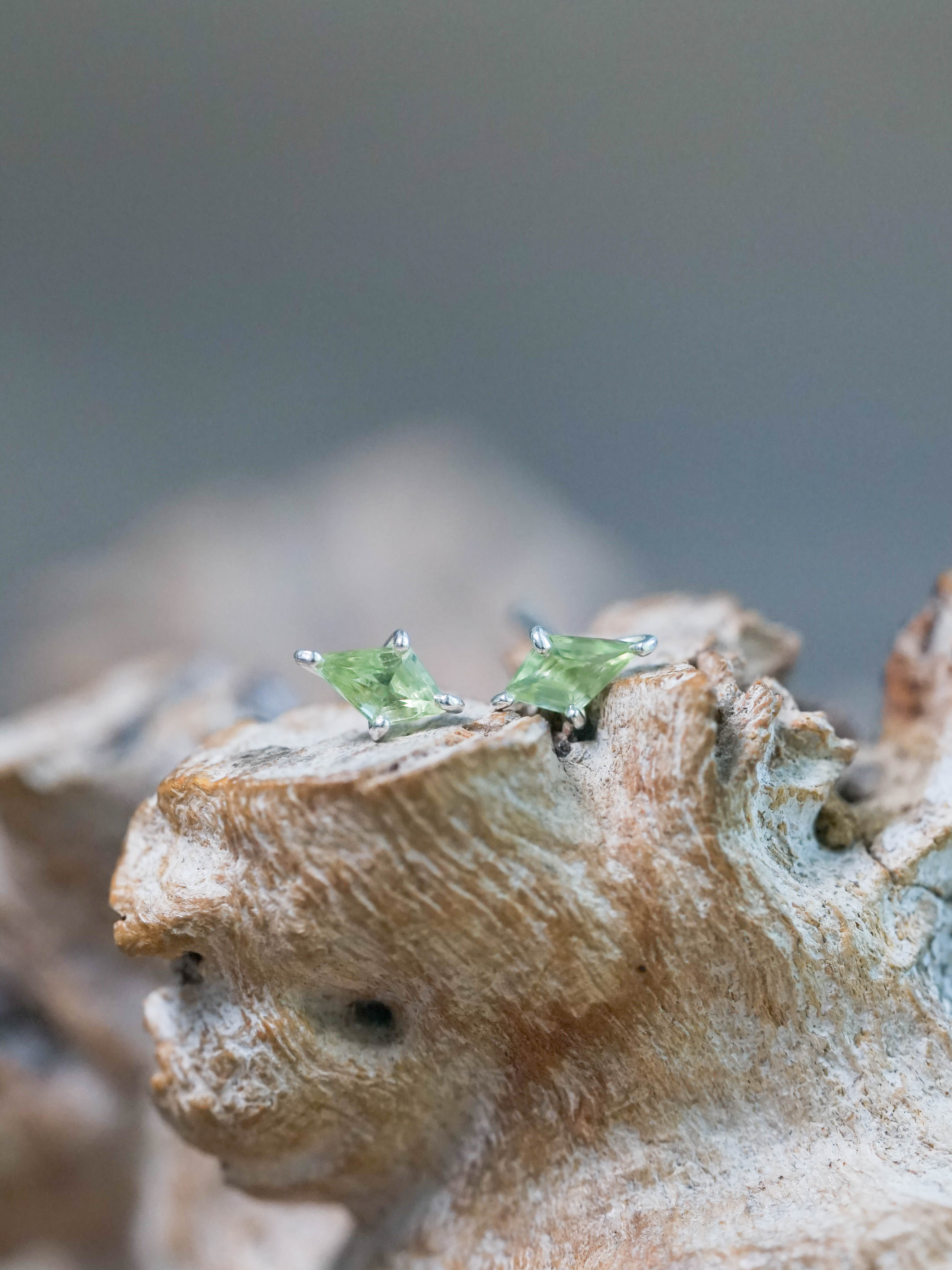 Fresh and grounding, green sapphire earrings bring balance and harmony. Simple silver studs earrings alive with natural color.