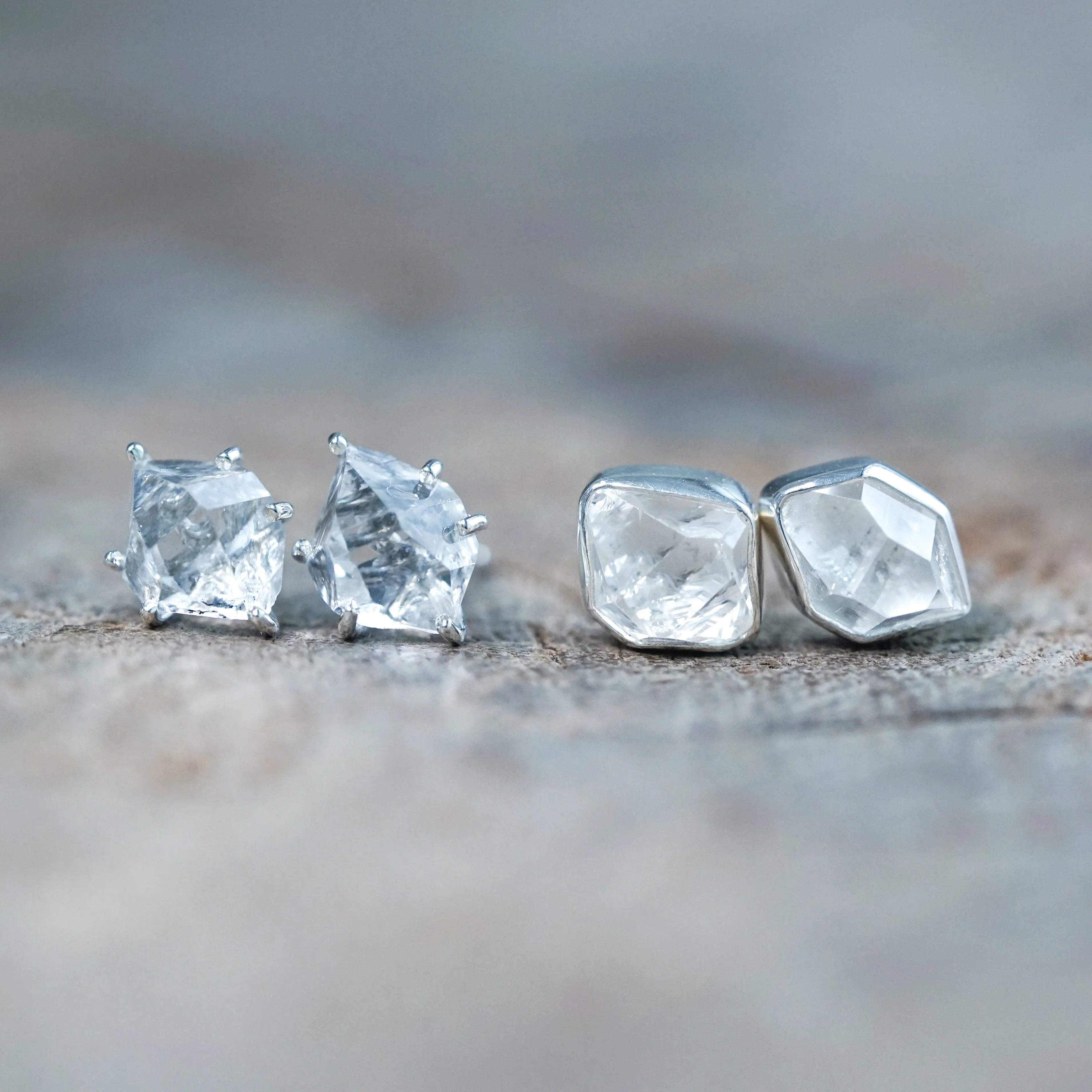 These Herkimer diamond earrings keep things honest. Clear quartz, naturally double terminated, with nothing to hide and nothing to polish away.