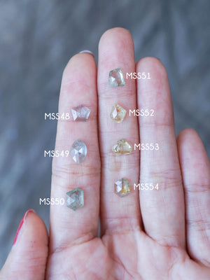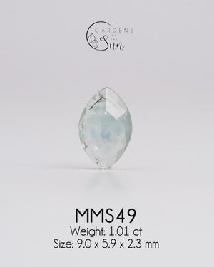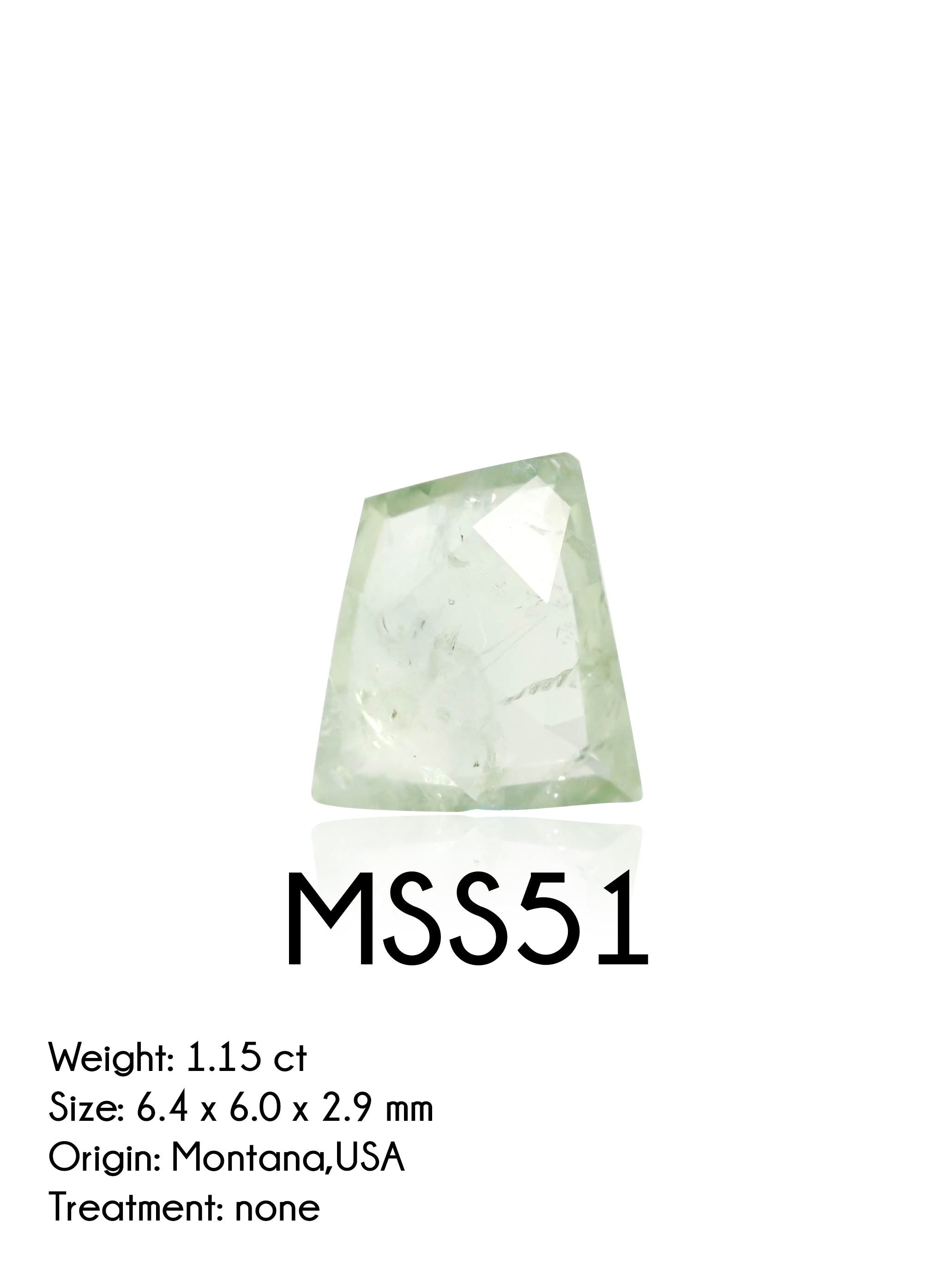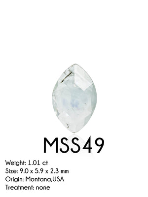 • MSS44 - 0.51 ct little freeform rose cut Montana sapphire. It’s translucent white color makes this sapphire an excellent diamond alternative on a budget. Measures 5.6 x 4.5 x 2.2 mm.