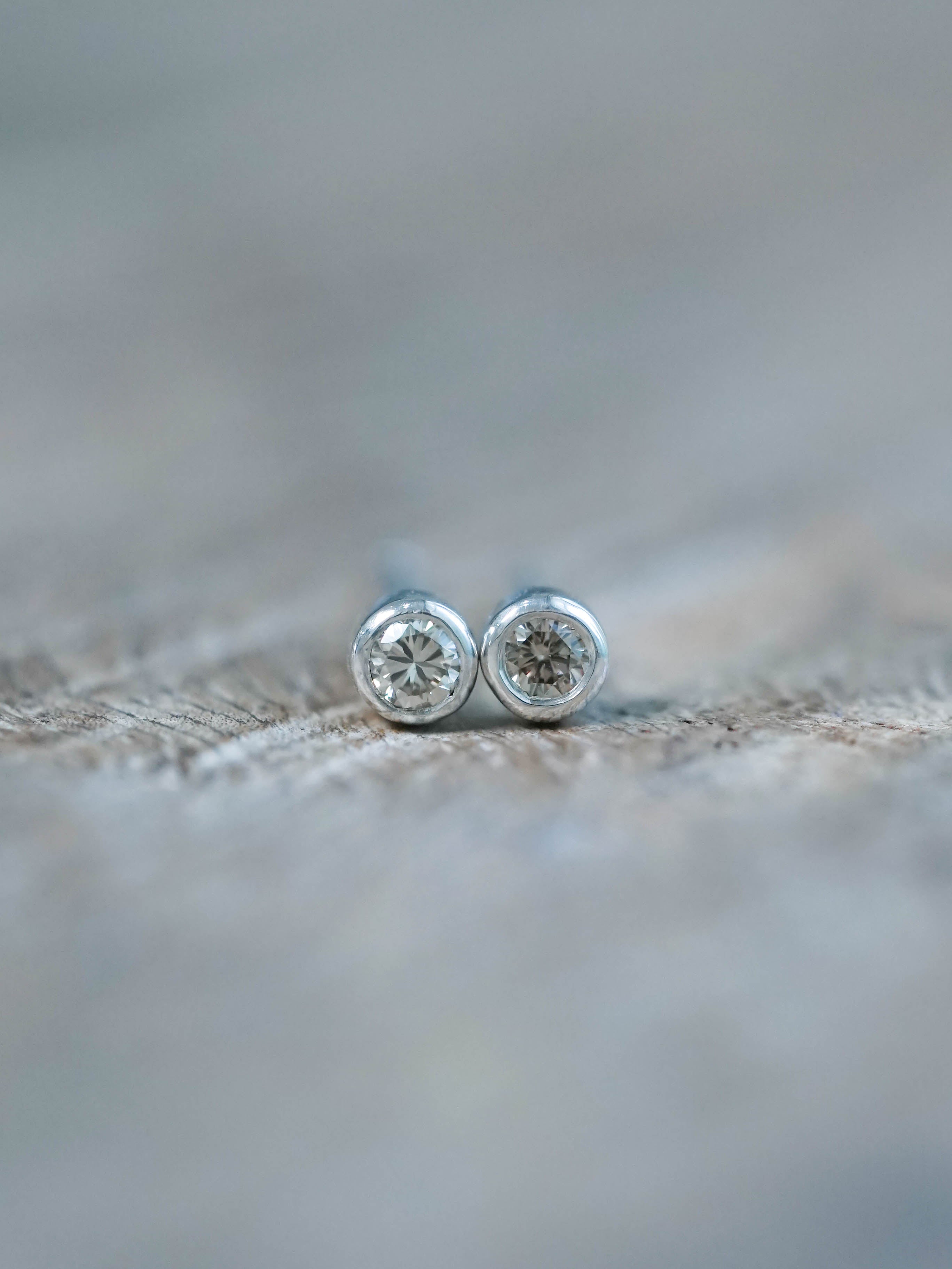 Dainty and minimal diamond stud earrings, just enough to catch the light without stealing the show. A minimalist design for the kind of simple diamond earrings for daily use you can sleep in, surf in, live in. Very small diamond earrings, plain in design, but carrying the timeless energy of the diamond itself. They’re the ultimate small diamond earring studs for men and for women alike.
