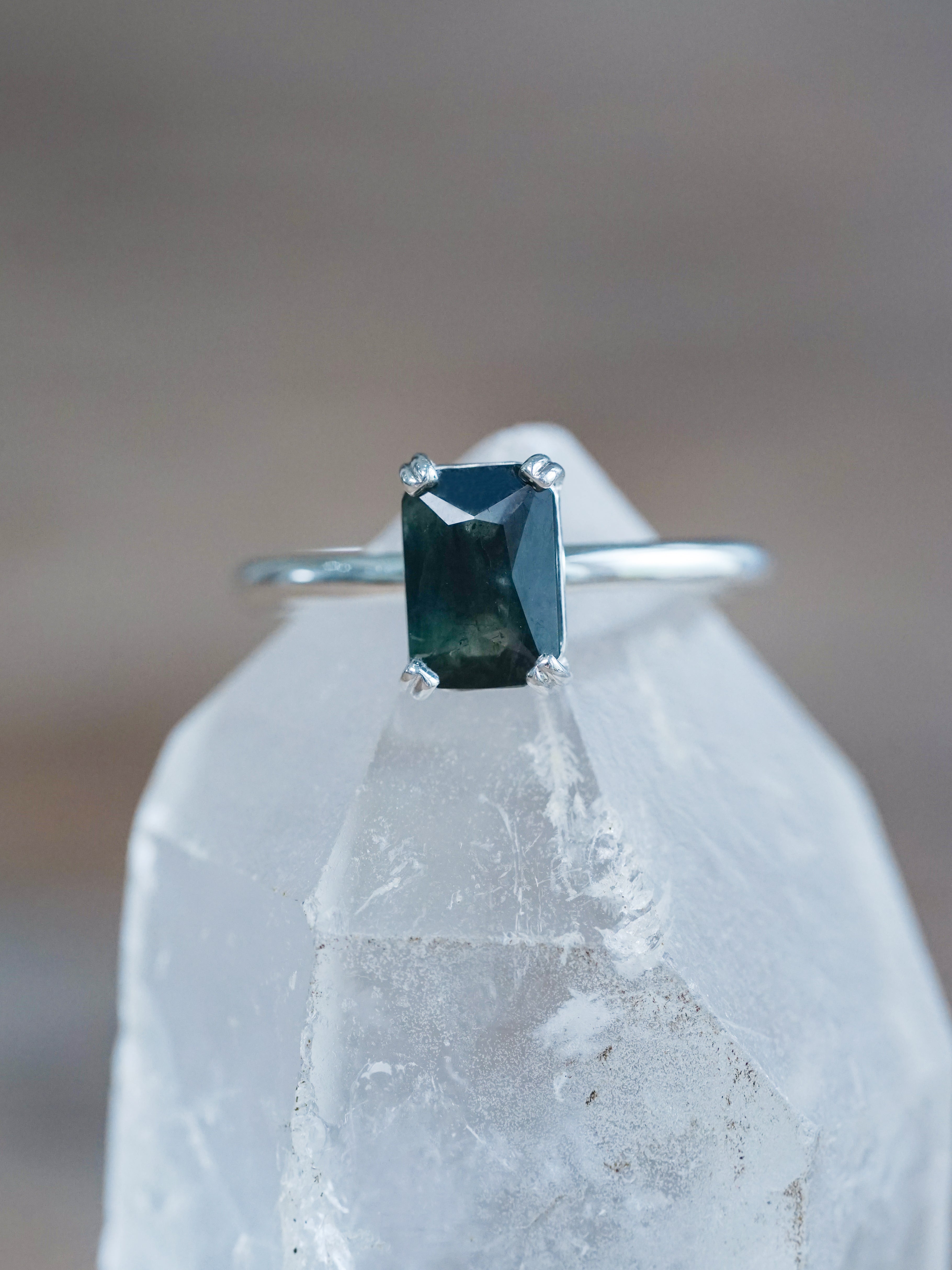 • 1.37 ct octagon cut dark green sapphire from Australia, heated