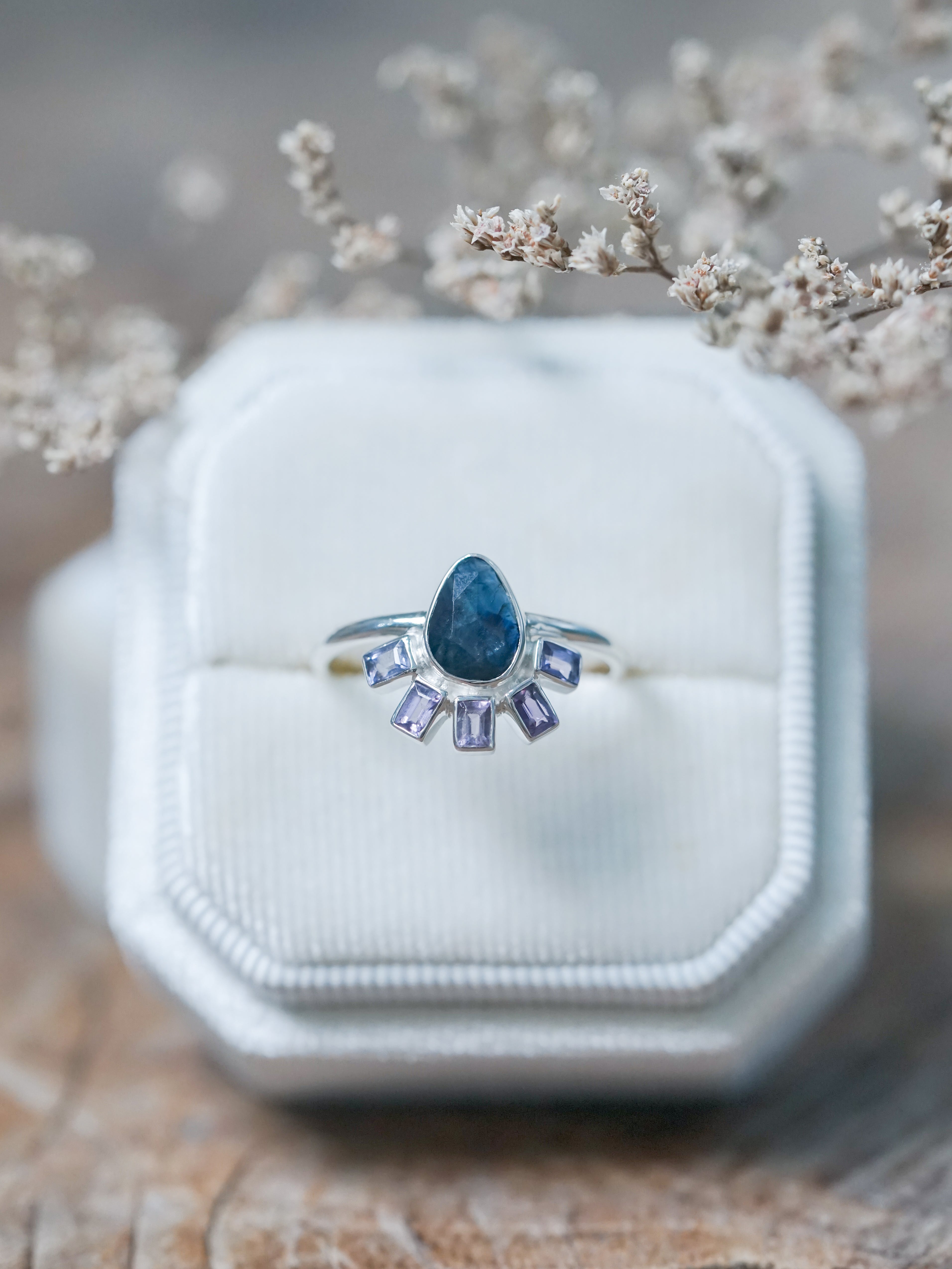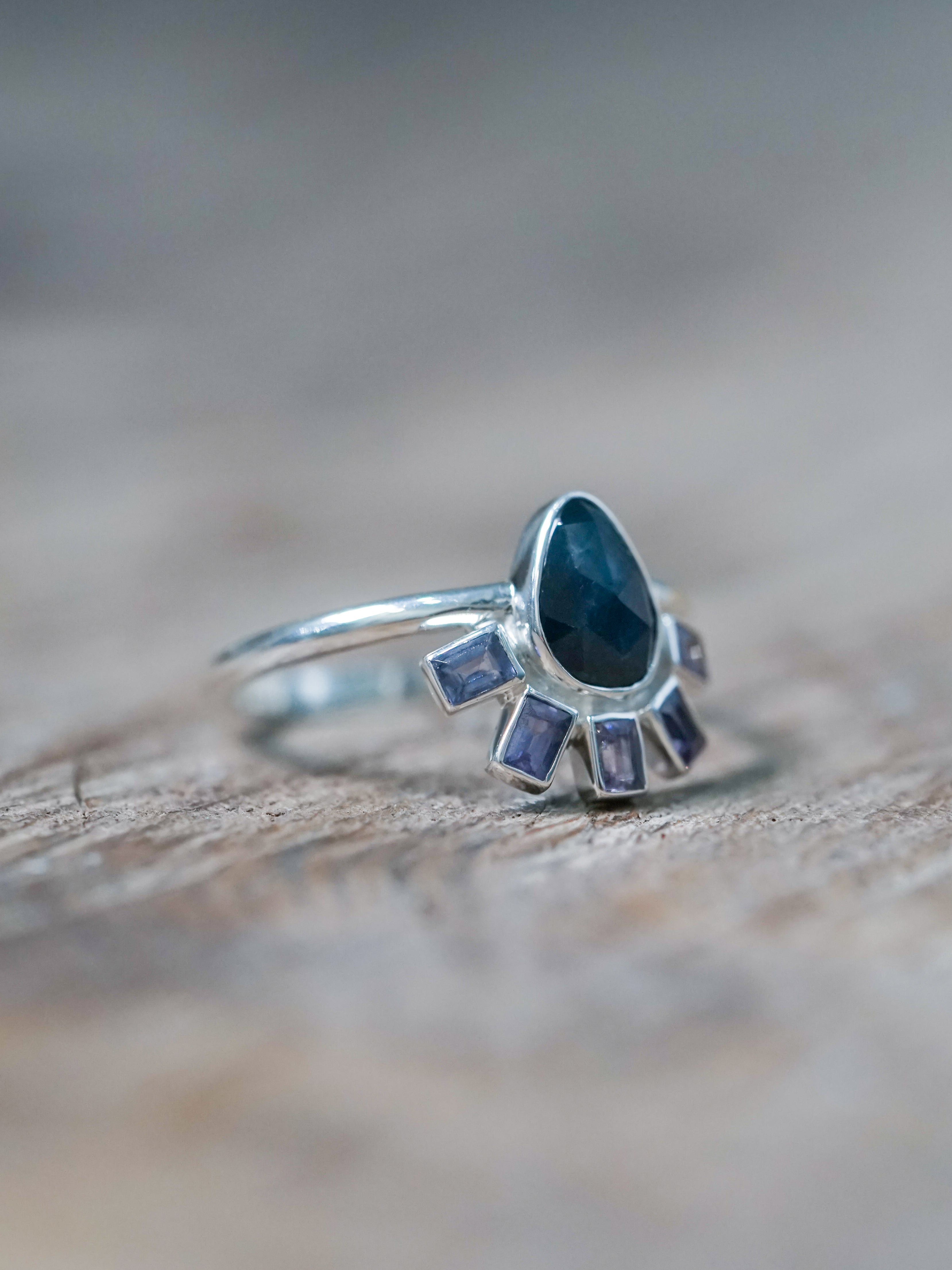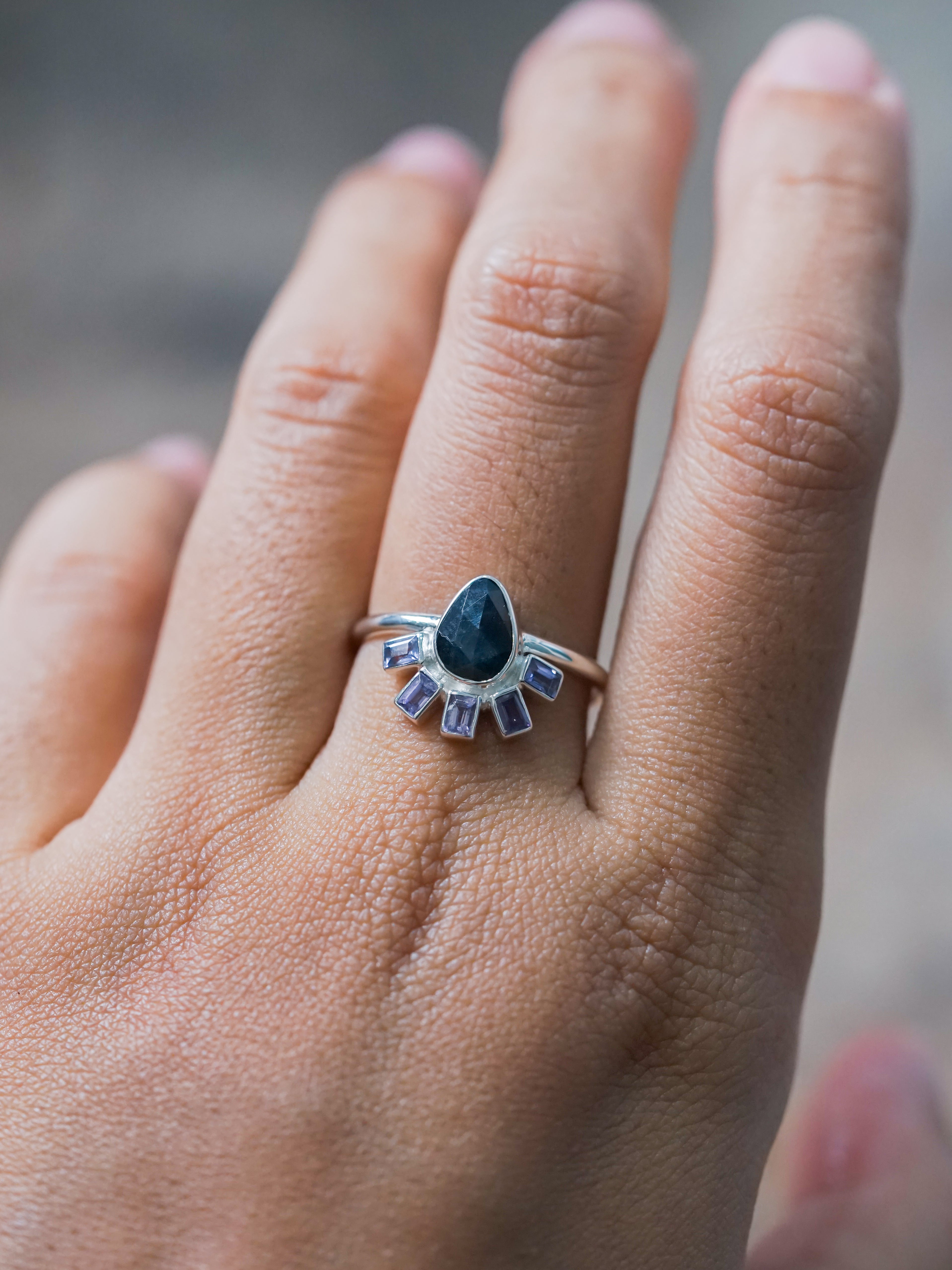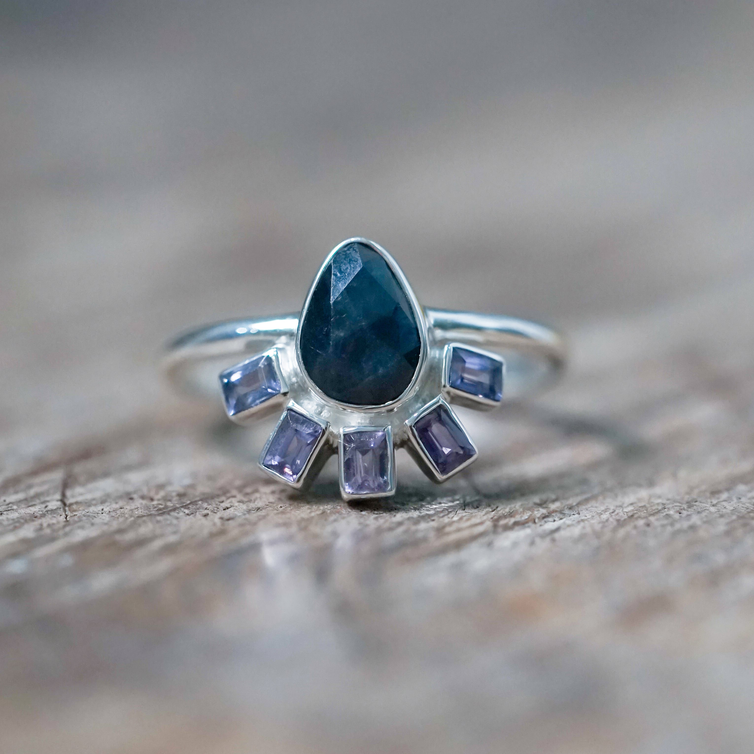 Rose Cut Pear and Purple Sapphire Ring - size 8.5