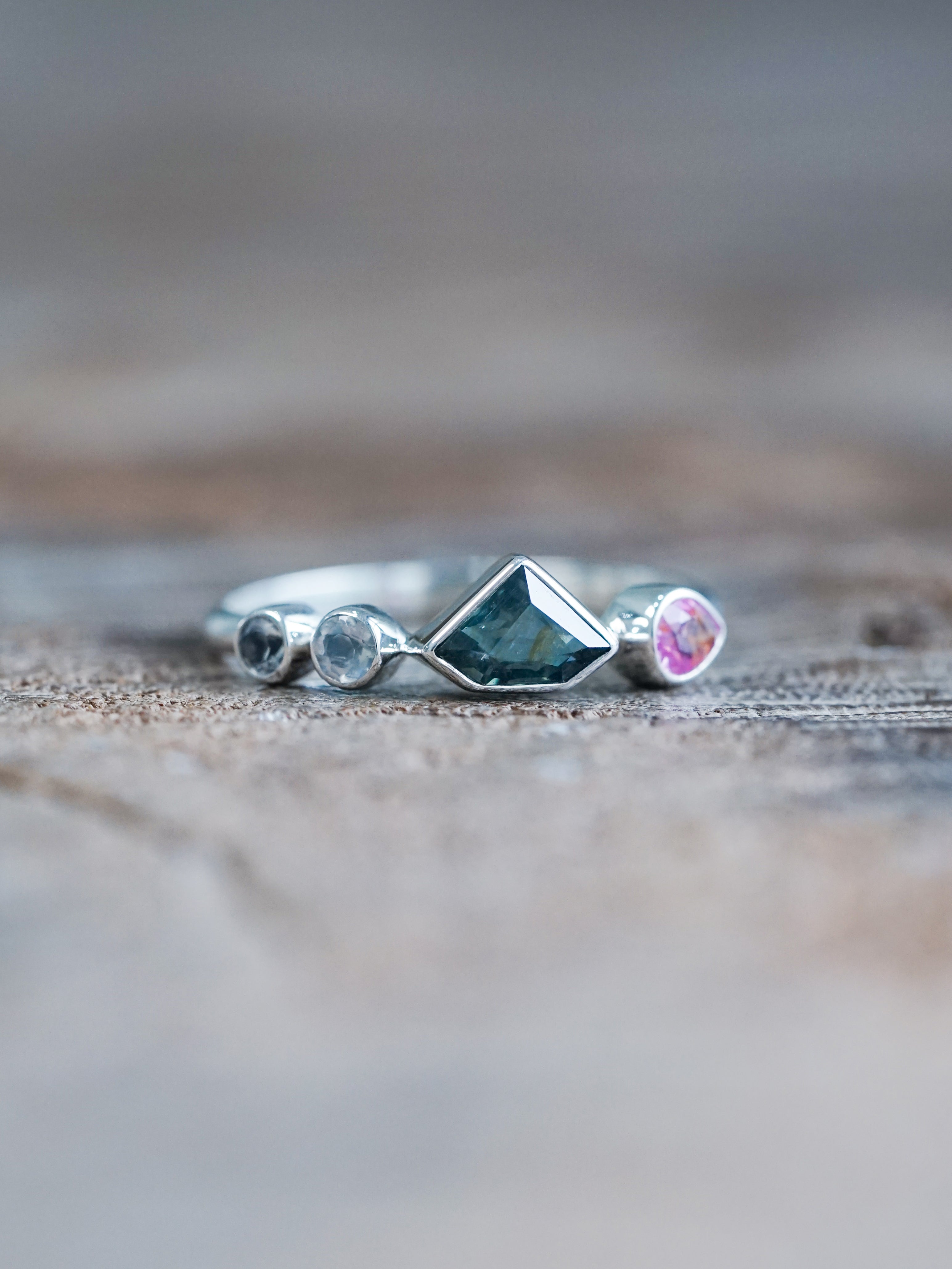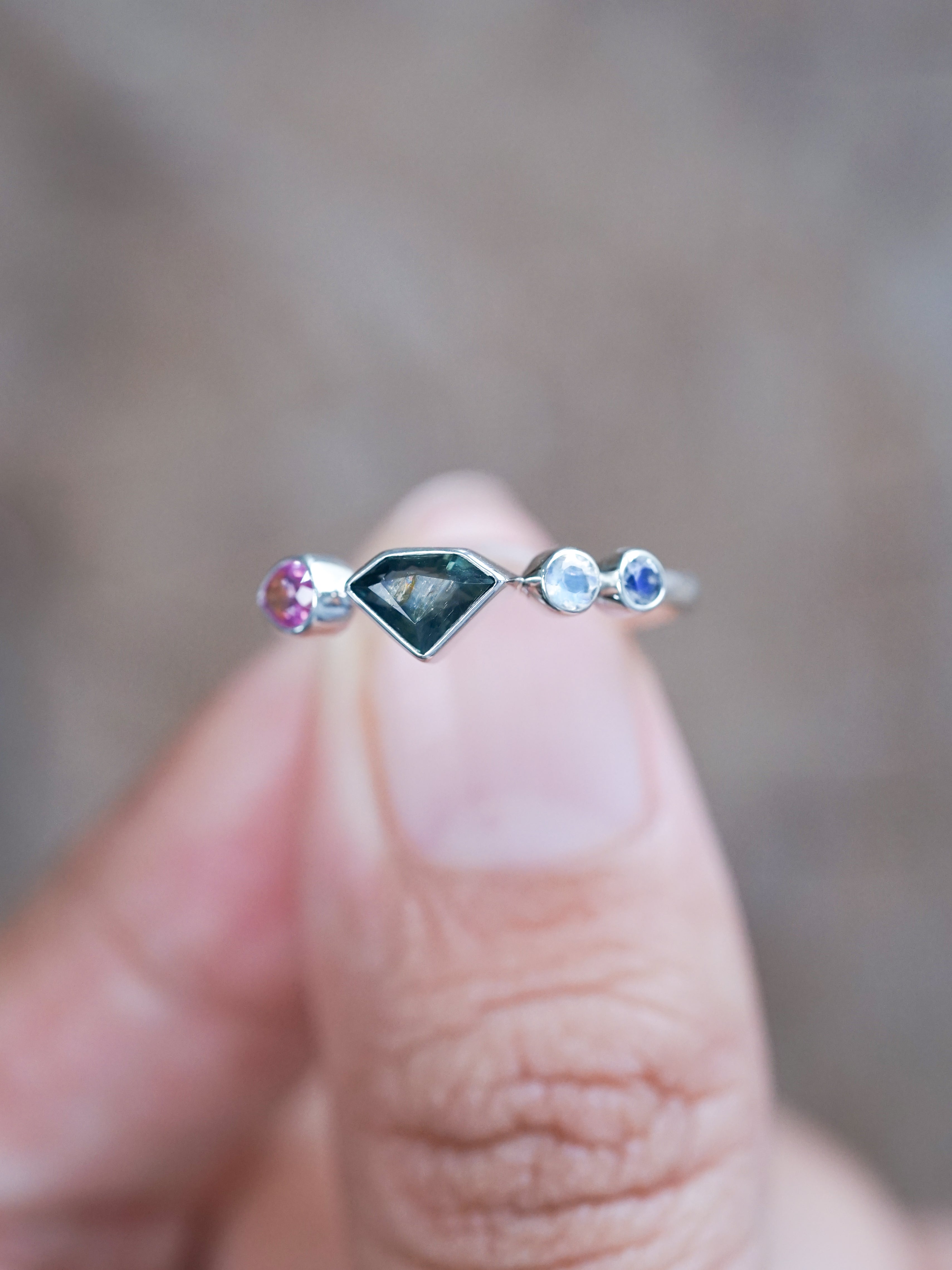 Shield Sapphire and Moonstone Ring - size 7