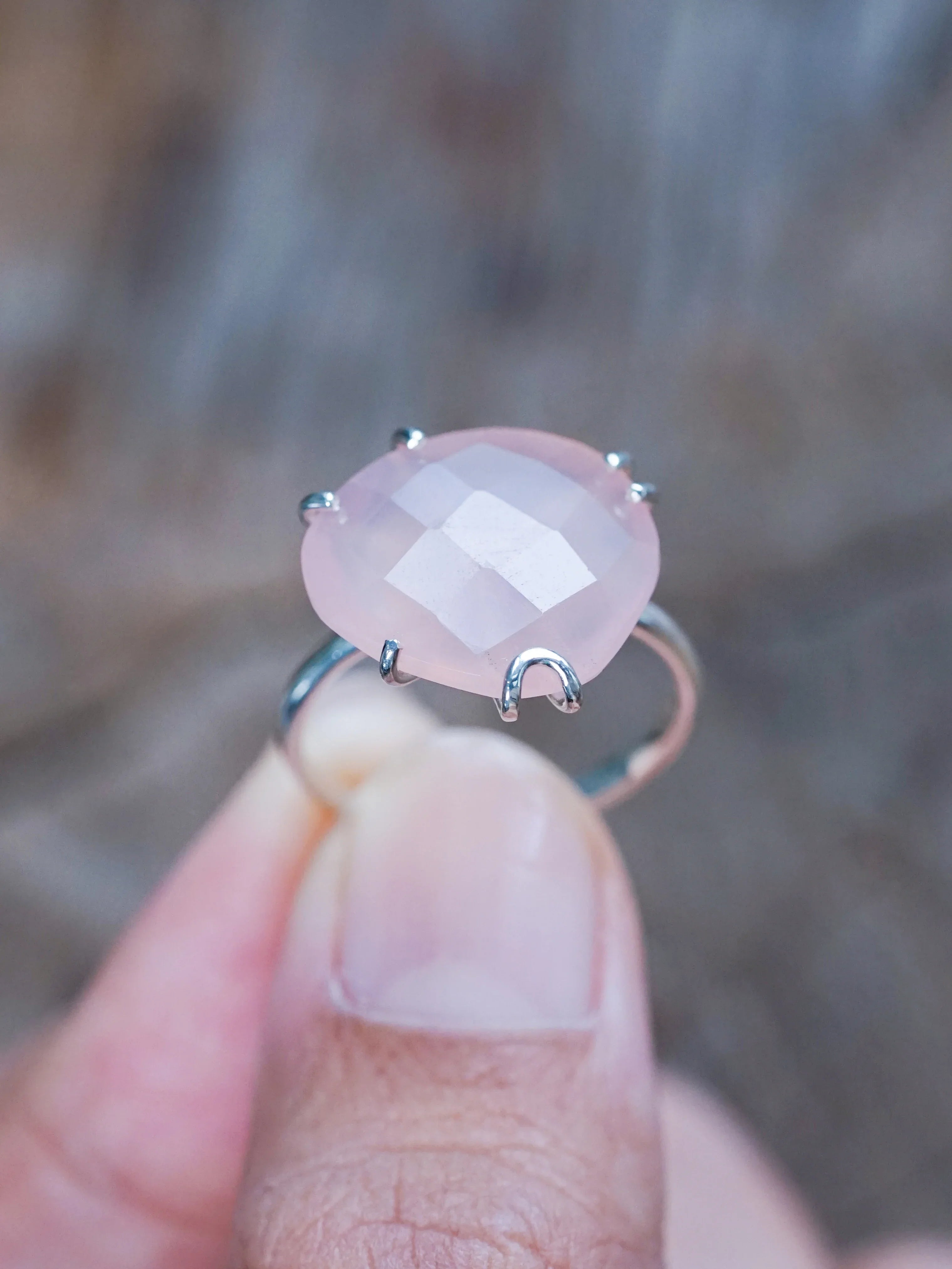 Set in recycled sterling silver and built for real life, this rose quartz cocktail ring moves with you. The playful, unexpected prong arrangement keeps things interesting.