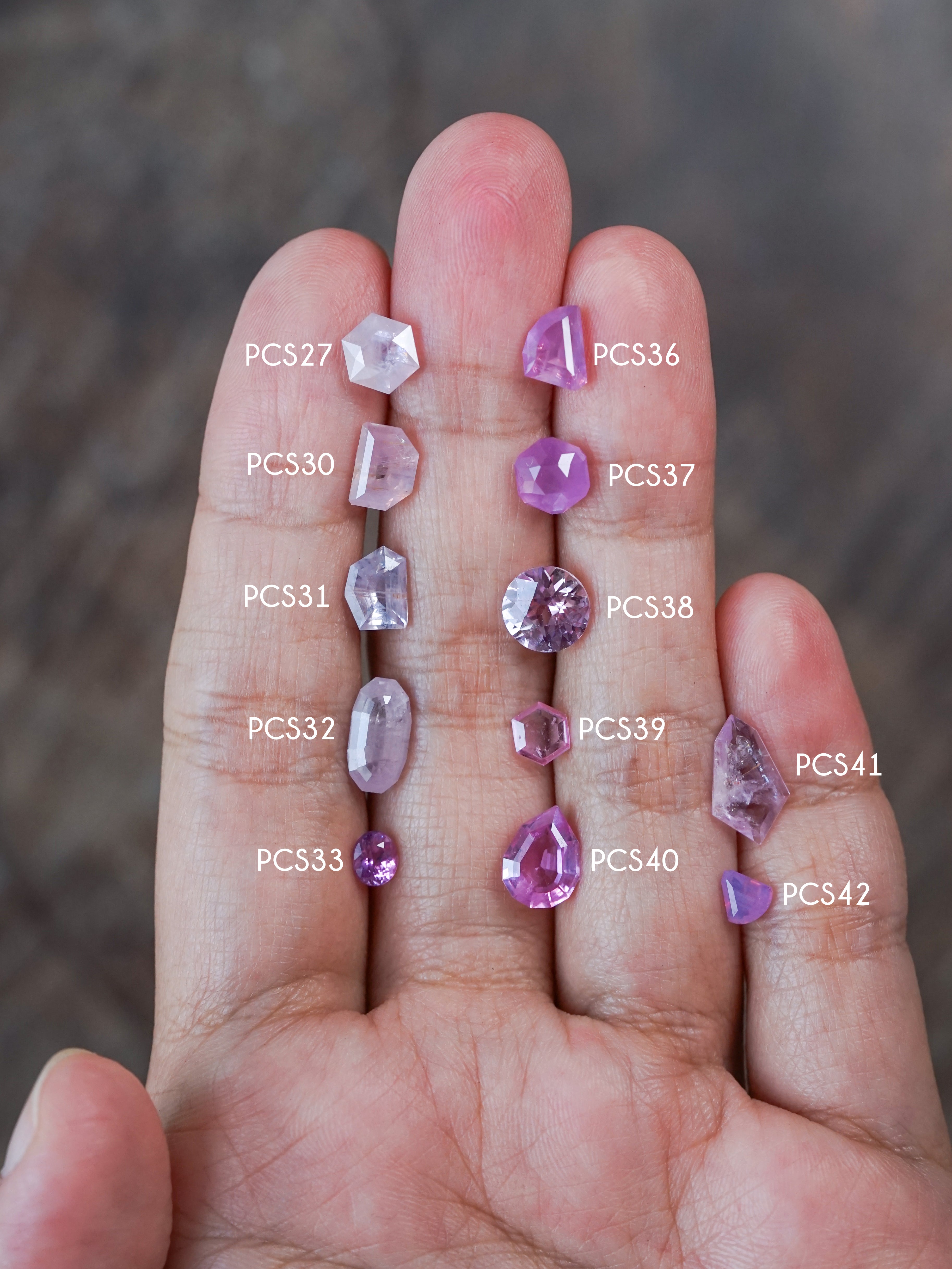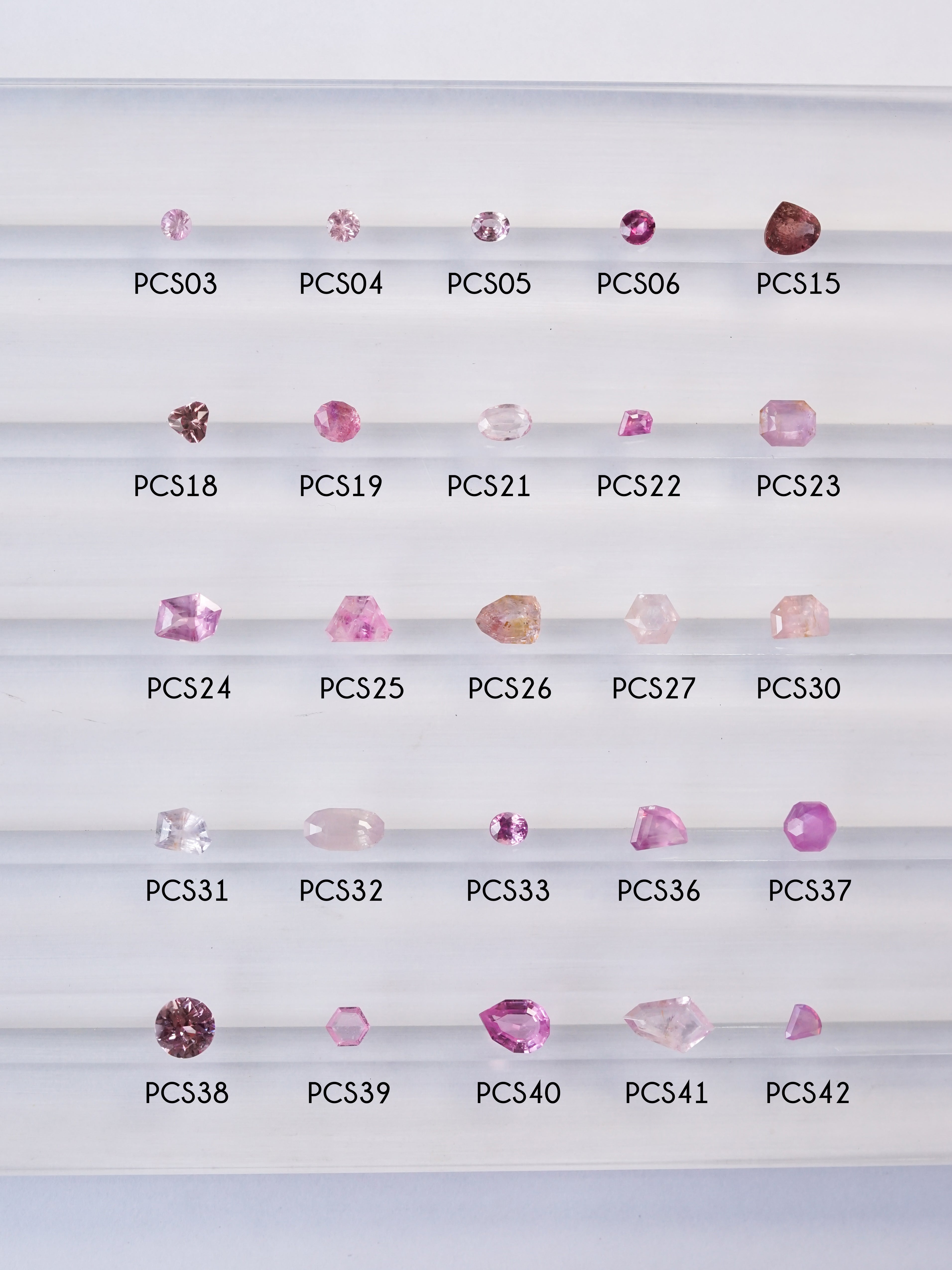 PCS03 – 0.32 ct baby pink sapphire, measures 3.9 x 3.9 x 2.8 mm, a sweet princess of a gem, this round sapphire may not demand to be pampered, but you'll want to do it anyway. Pair it with a white gold band to bring it some clarity. Mined and cut in Sri Lanka.