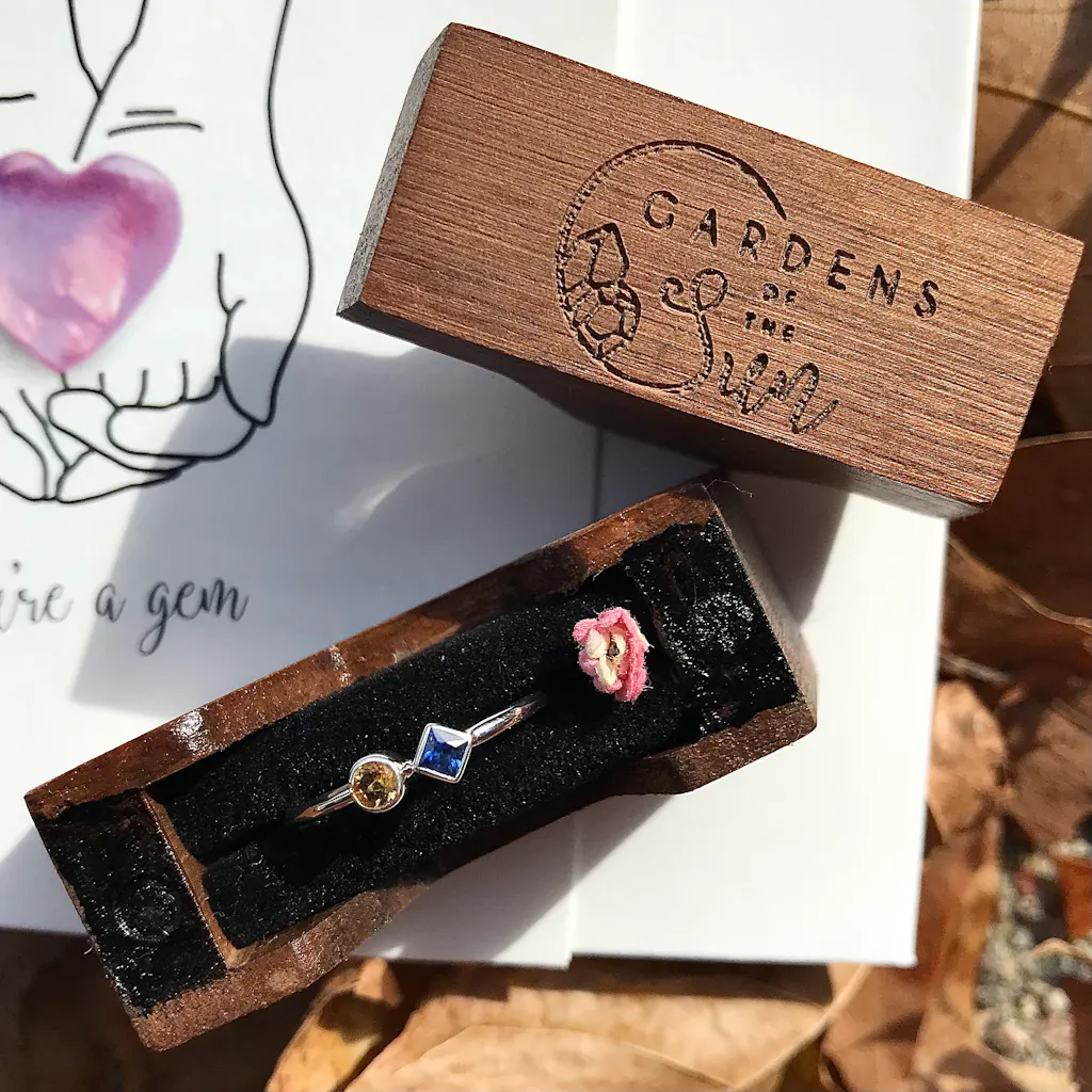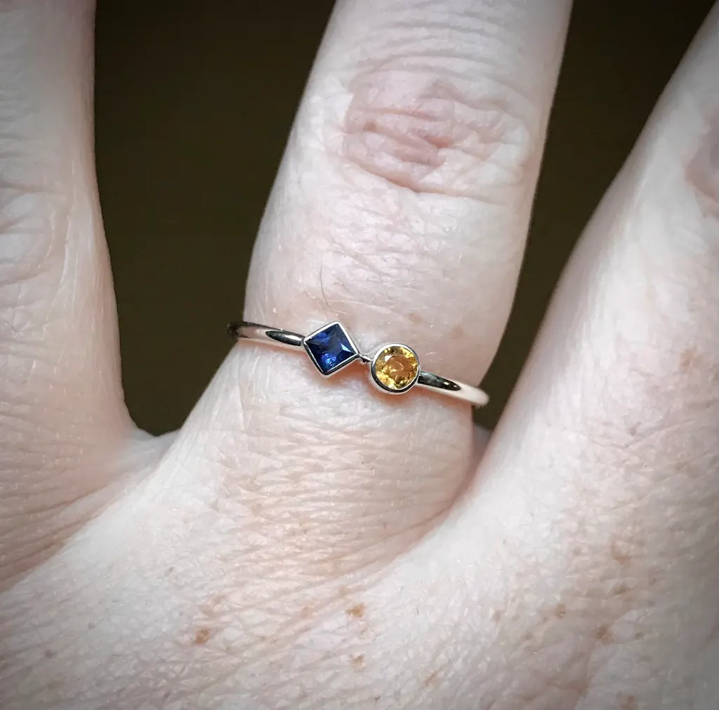 This ring is one juicy powerhouse. A feel-good combo of gorgeous leafy green emerald from Zambia paired with a twinkling green peridot from Pakistan. It makes me dream of the color of sunlight through trees, lime green shades, and freshly mown grass.