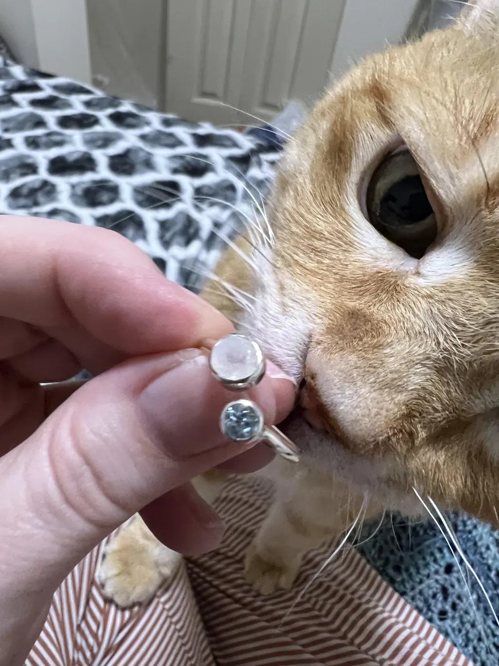 Wear your moonstone and aquamarine ring with moonstone and aquamarine heart earrings.