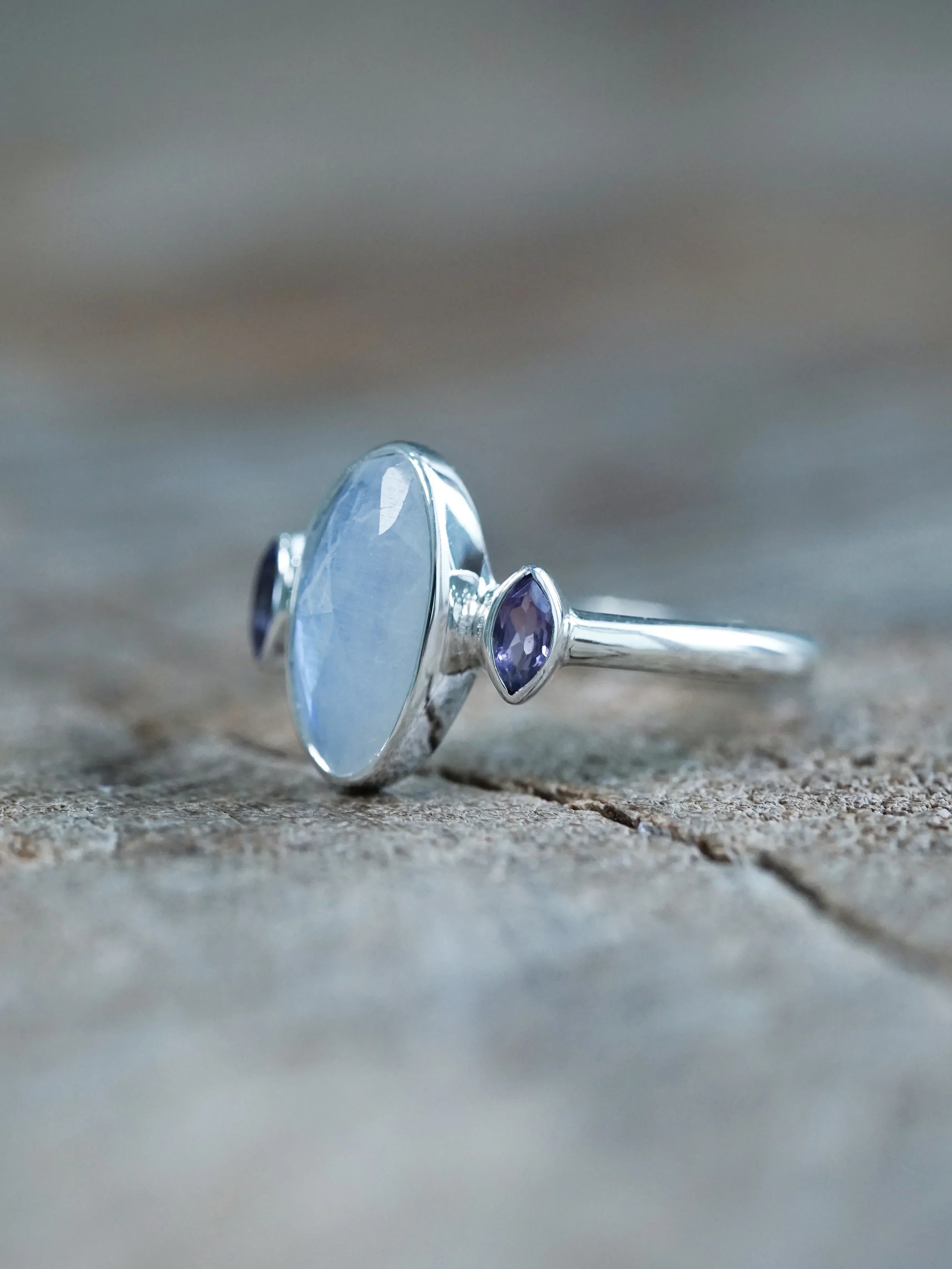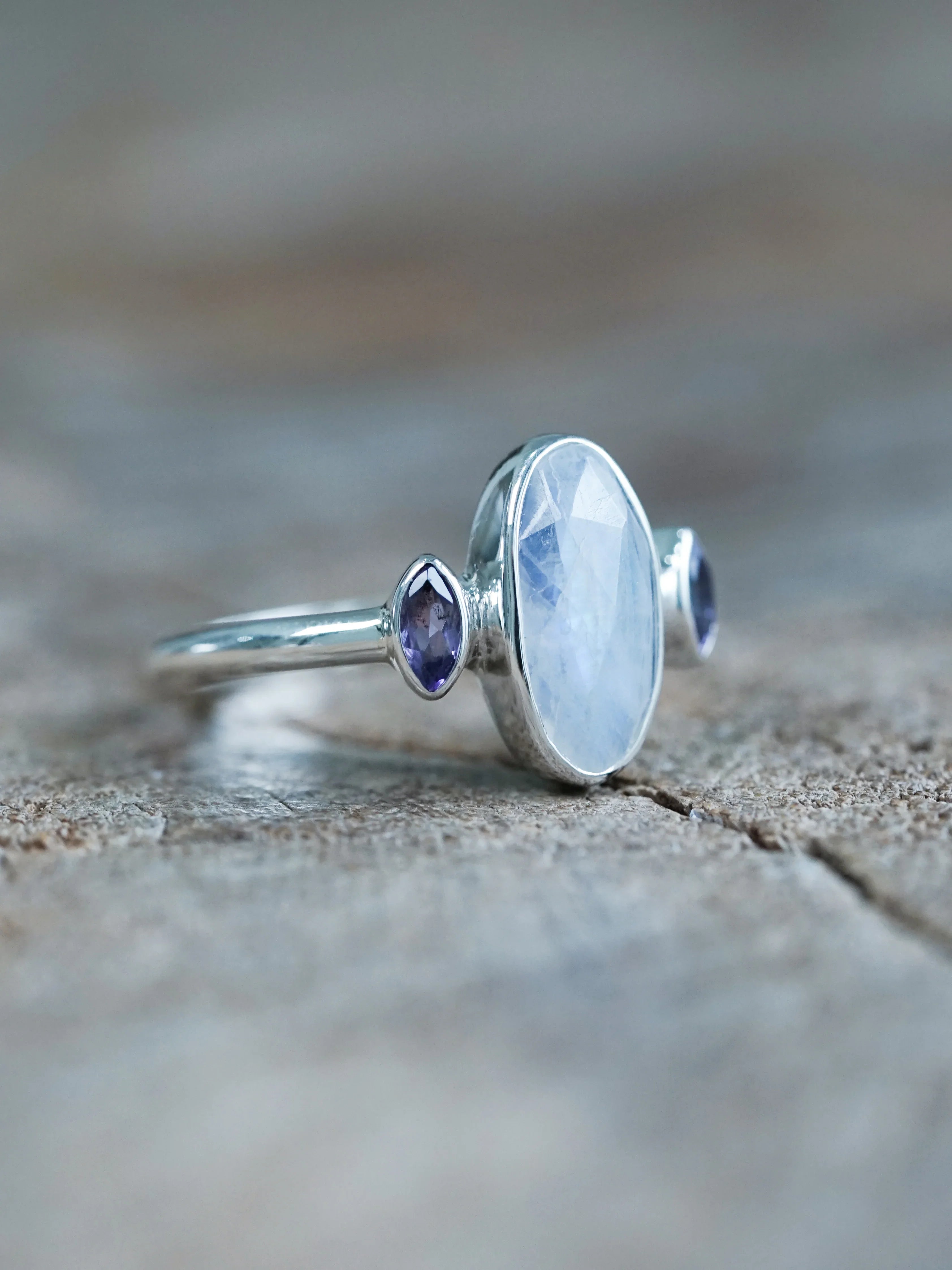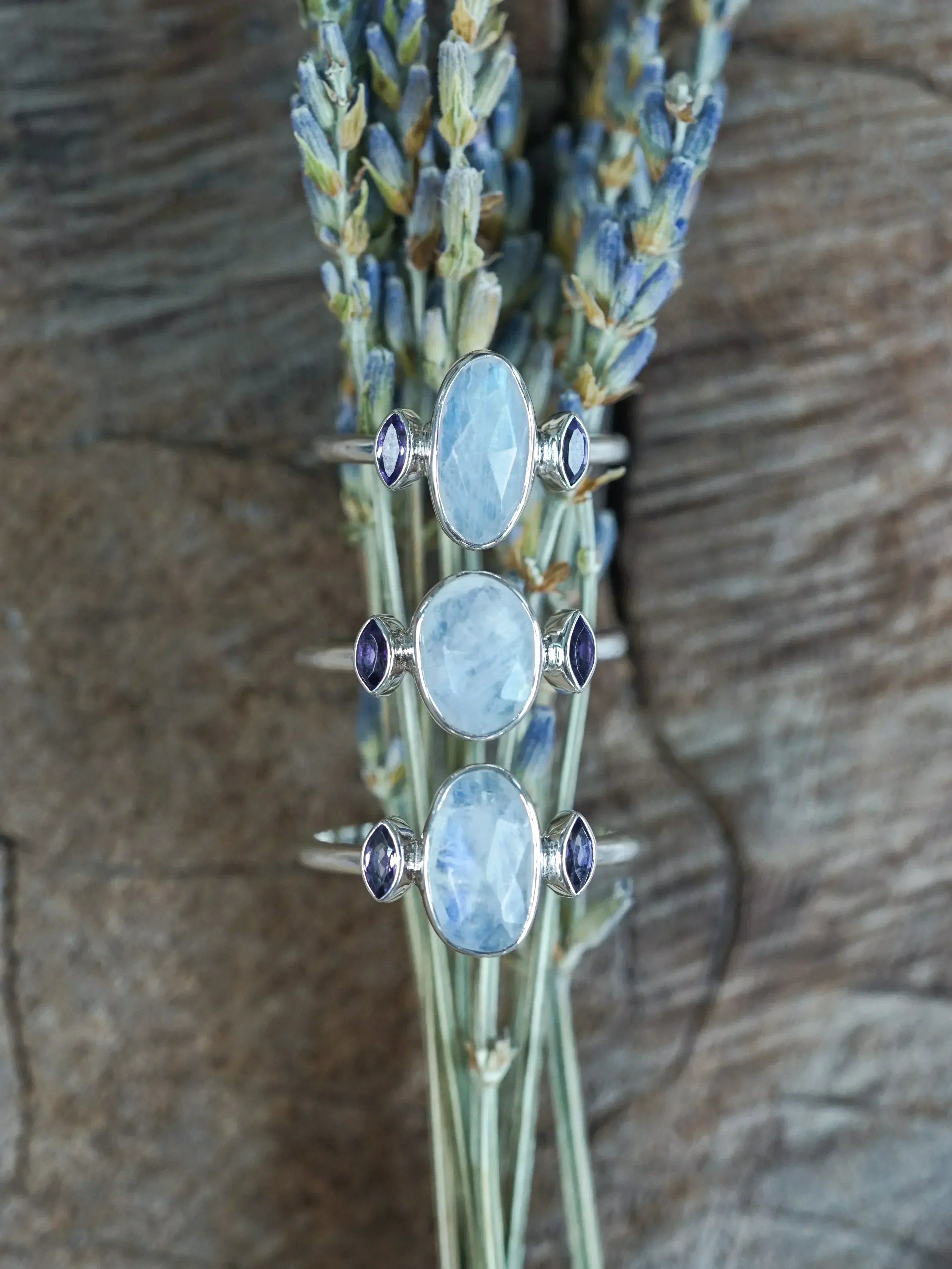 The Moonstone and Amethyst Ring feels like night working in your favor. You feel the answer in your gut before you can explain it. Intuition plus insight. Feeling plus clarity. Heart plus calm.