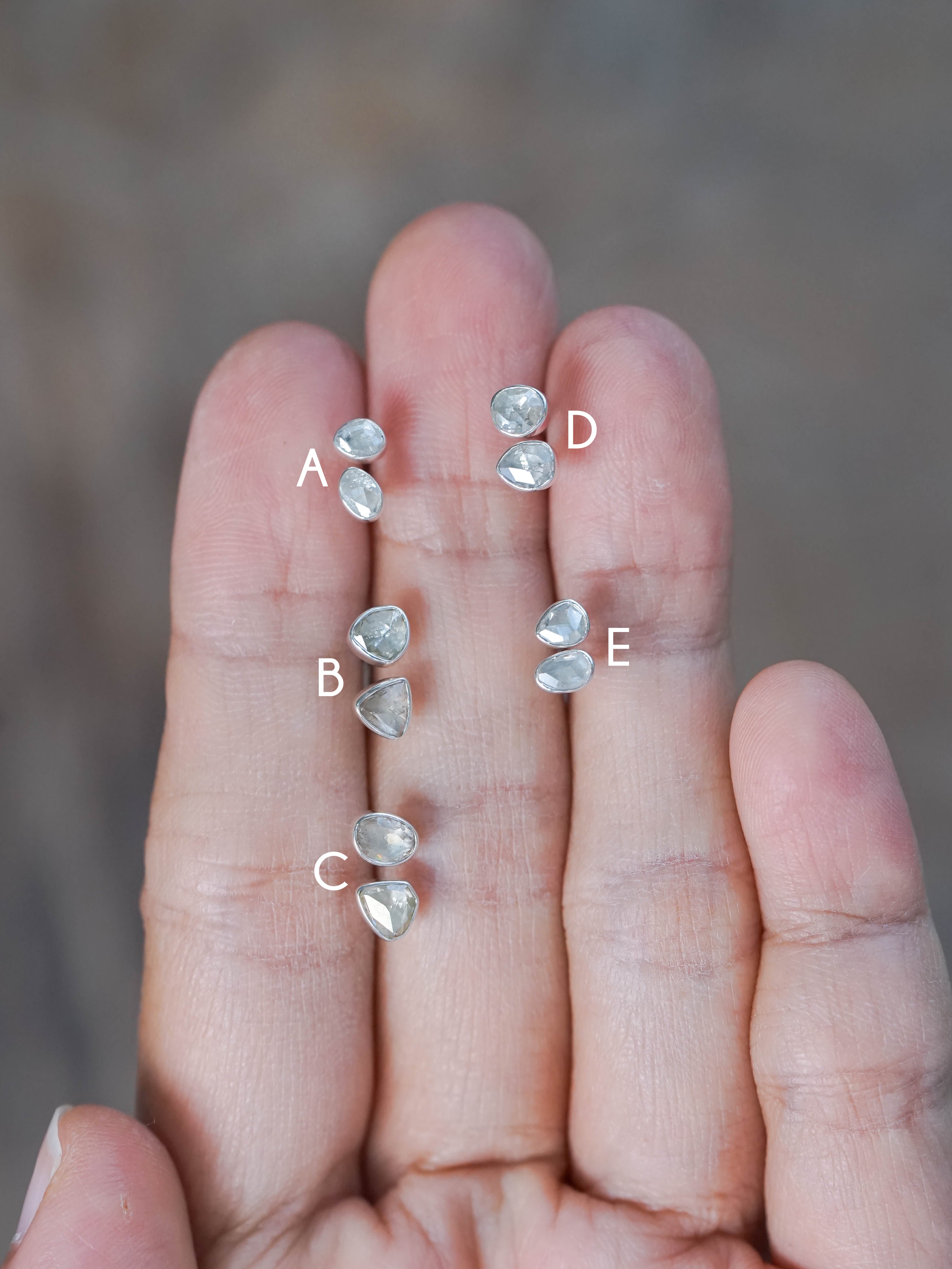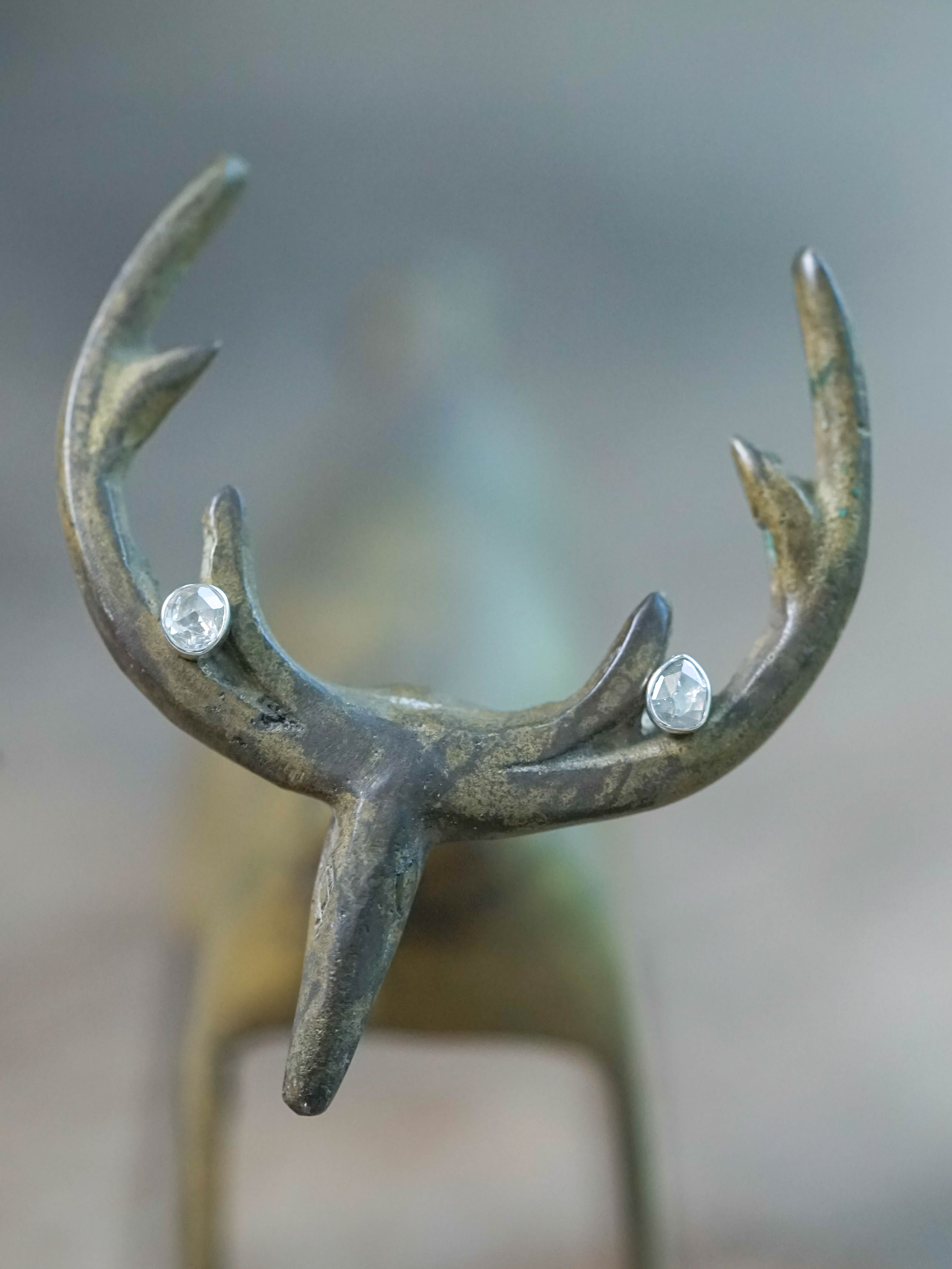 Rose Cut Diamond Earrings in Sterling Silver are for those who’d rather wear stories than perfection. These natural diamonds come from South Kalimantan, Indonesia, dug up by artisanal miners. Rose cut by hand, full of attitude, character and the kind of quirks you’d want in a best friend or a secret handshake.